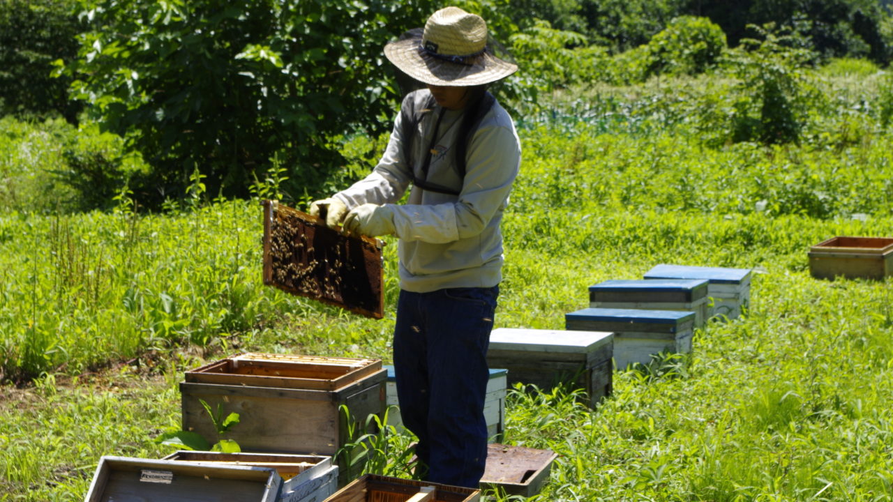 養蜂の世界では、若手の萩原さん。日々真摯に蜂と向き合い、より蜂にとっても人間にとってもいい環境は何かを考え、チャレンジをしており、これからの活躍がとても楽しみです。