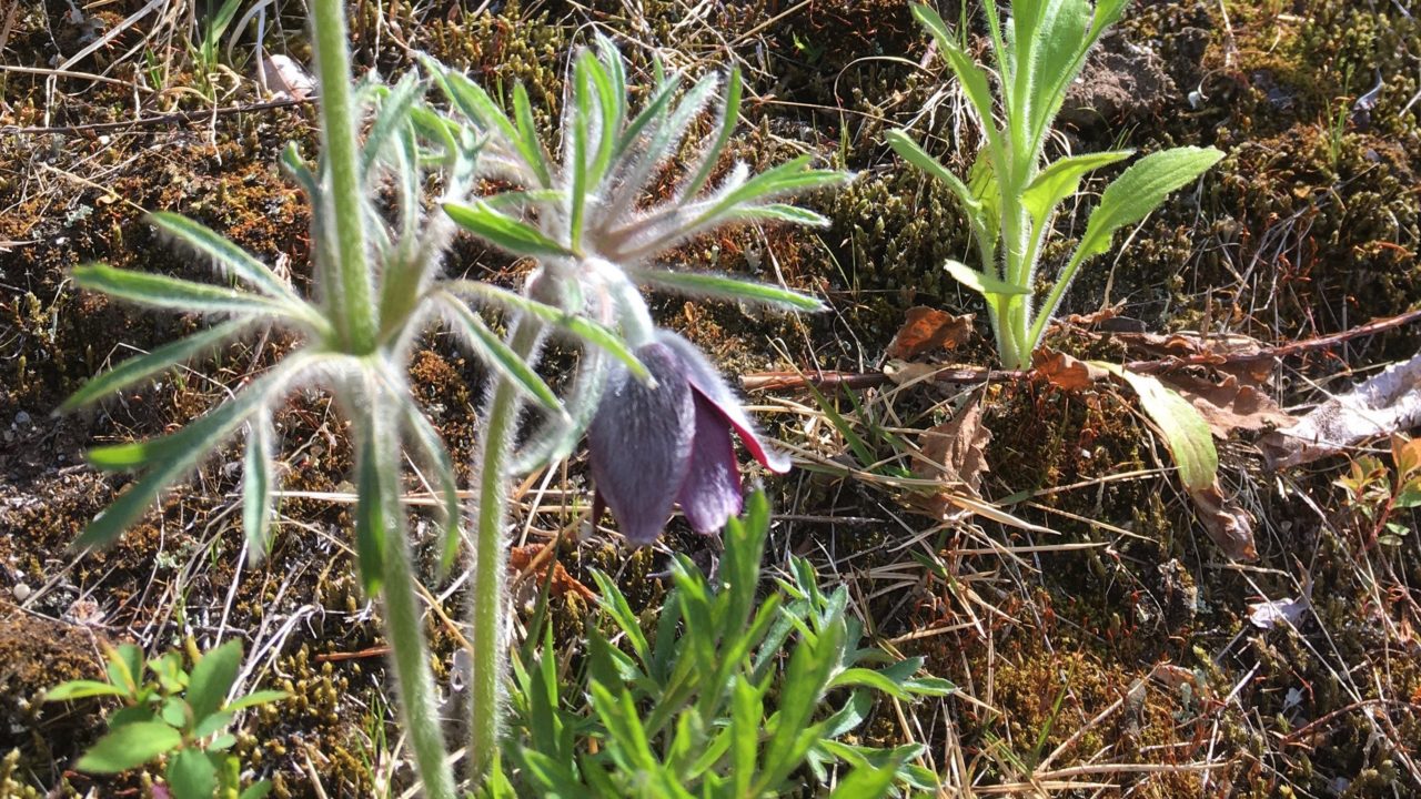 片品村の公園で見つけた、環境省レッドデータブックにつ危惧種Ⅱ種(VU)に指定されているオキナグサ。